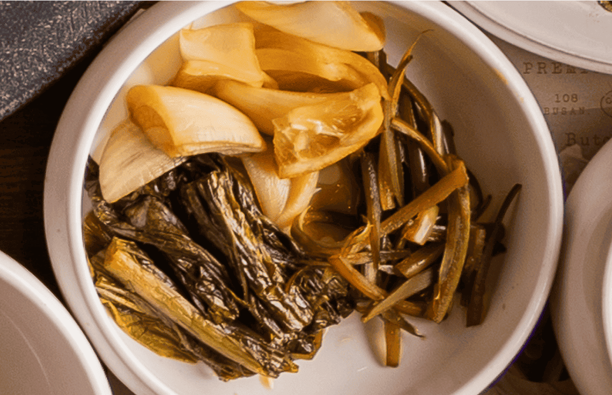 좋은 고기와 어울리는 곁들임 장아찌입니다
